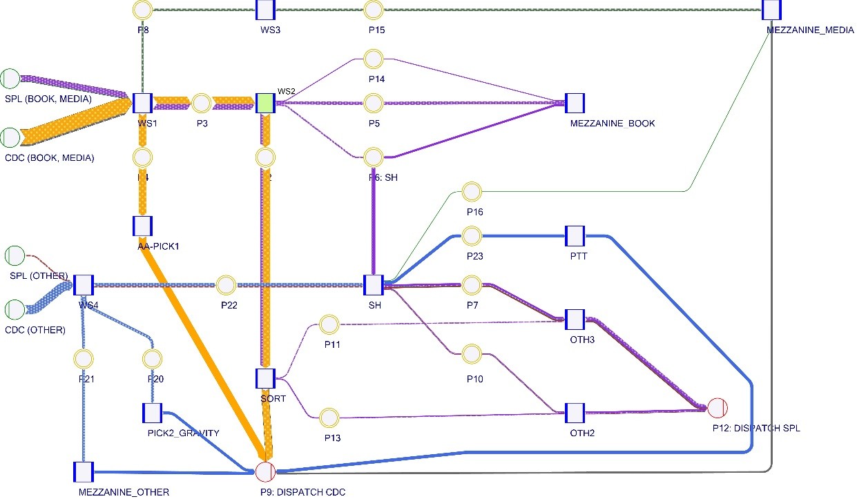 Metoda obliczeniowa wskazująca przebieg, zależności i rezultaty strumieni wchodzących i wychodzących jednostek w magazynie przechodzących na swojej drodze kolejne procesy przygotowania do wysyłki. Wyniki najczęściej wyrażone są graficznie za pomocą wykresów Sankey-a.
